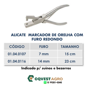 | Nome do Produto | : | ALICATE MARCADOR DE ORELHA COM FURO REDONDO 23CM 14MM |